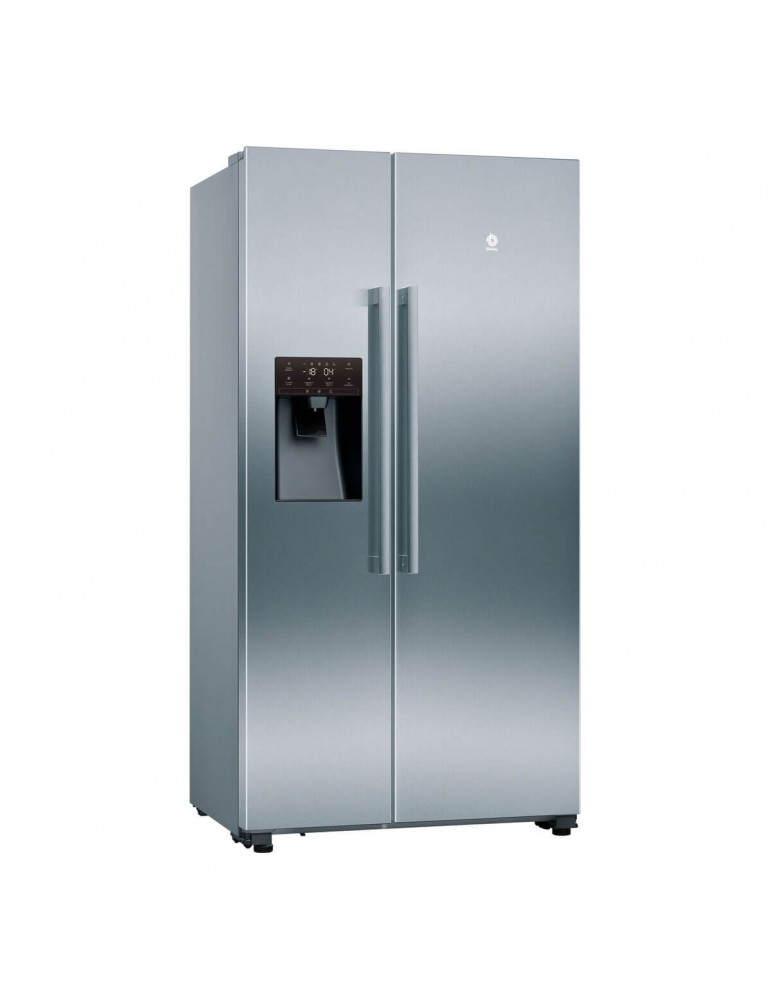 BALAY, 3FAE494XE, Frío, Frigorífico americano NoFrost, E, Libre instalación, 179x91x71 cm., 562 l., Puertas Acero antihuellas, Dispensador de agua y hielo sin conexión a la red de agua (tanque interior). Electrónica en la puerta.