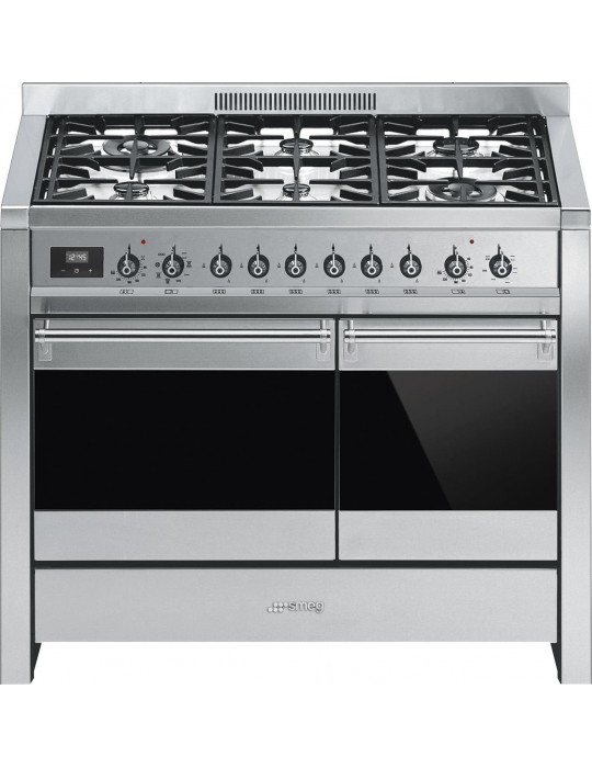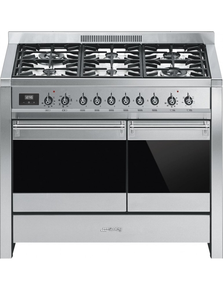 Cocina Opera, 100x60 cm, encimera gas, 6 zonas de cocción, 2 hornos, horno principal termoventilado, eficiencia energética A, horno secundario estático, cajón almacenaje