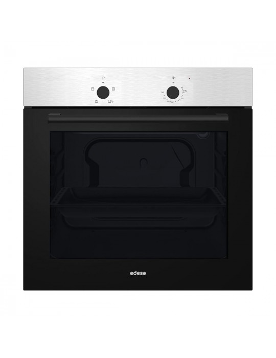 Horno convencional inox de 60cm y 62 litros de capacidad. 4 programas de cocinado. 2 cristales en puerta con ventilación tangencial. 1 Bandeja esmaltadas de 25mm