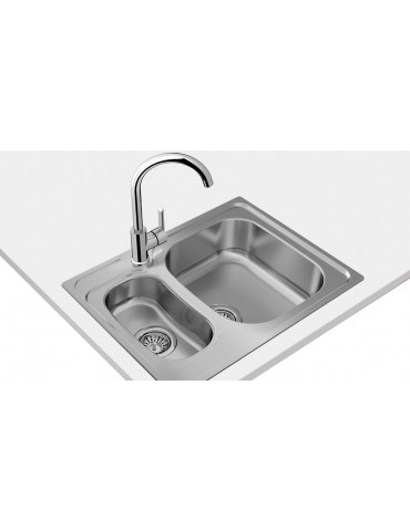 Fregadero de cubeta grande y cubeta auxiliar • Acero inoxidable 18/10 • Válvula canasta 3 1/2 + sifón • Profundidad de las cubetas 160 y 95 mm • Mueble de 60 cm, https://www.teka.com/es-es/producto/universe-60-t-xp-1%c2%bdb_115070001/, FREGADERO