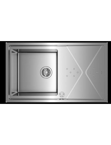 Fregadero inox 1 cubeta, 1 escurridor, 210mm, Øgrifo, Mueble 50, desagüe automaitico, silent smart