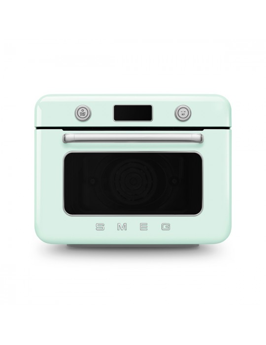 Horno sobre encimera multifunción con tecnología Galileo, 50-s style, Verde Combina cocción tradicional, vapor y programas automáticos como Air Fry. Incluye 33 recetas predefinidas, fácil limpieza con función de descalcificación y tanque desmontable, y ac