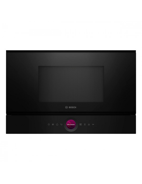 BOSCH, BEL7321B1, Microondas, electrónico, Integrable sin marco, 38 cm., 21 l., 5 F, Asistente de limpieza con agua, Ap. lateral izquierda, Cristal negro, Display TFT touch, 10 prog. auto., Programación electrónica de paro, sin plato giratorio, con grill.