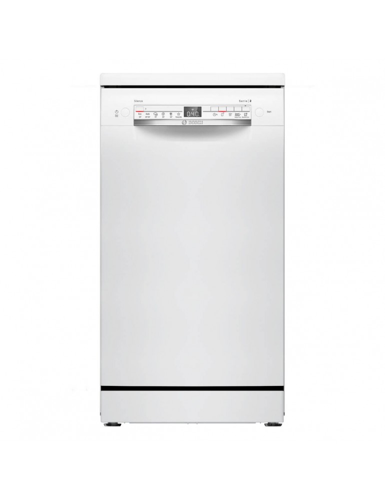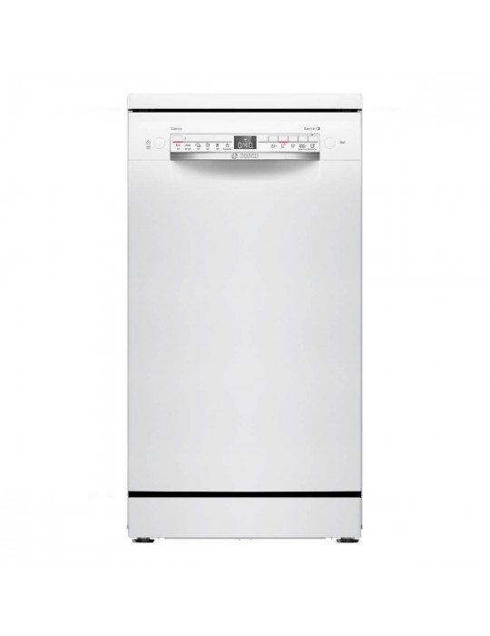 BOSCH, SPS2HKW58E, Lavavajillas, E, Libre instalación, 45 cm , 9 servicios, HC, Blanco, display y selección directa de funciones. Progr. Auto, 1h, Favorito. Prog. esp. limpieza cuba2.0. 2 f Extra seco VSPlus. 8,9 litros,46 db