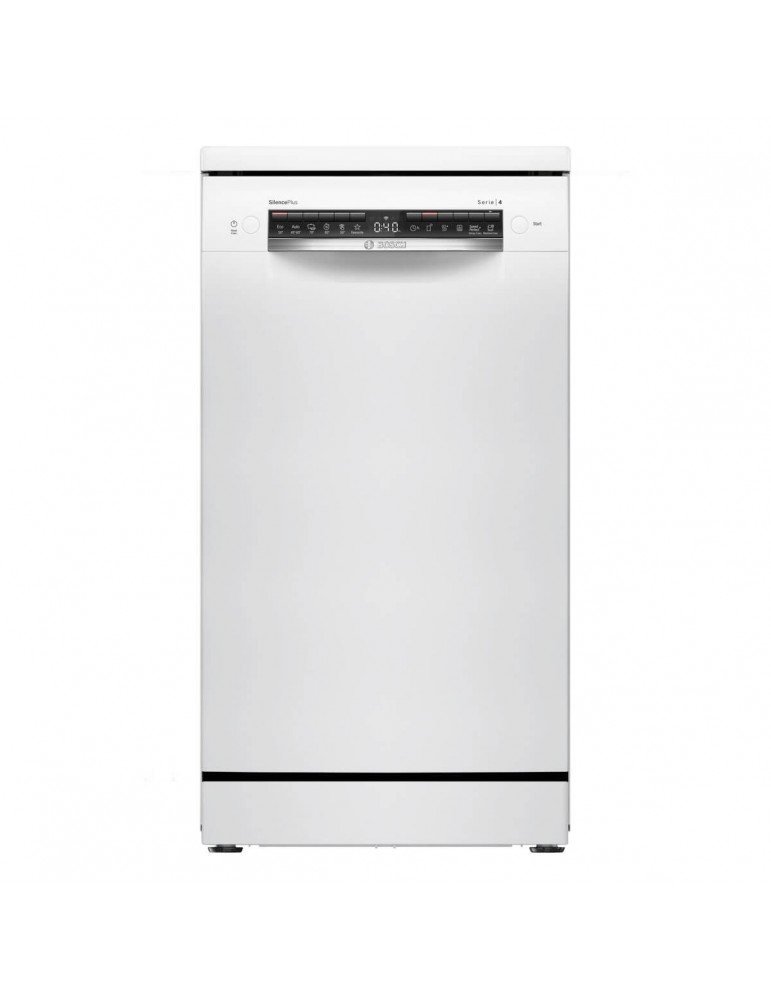 BOSCH, SPS4HMW49E, Lavavajillas, E, Libre instalación, 45 cm , 10 servicios, HC, Blanco, display+teclas, 3ª bandeja, Pgr..Auto 1h, Favorito. Prog. esp. limpieza cuba2.0. 3 f Extra seco, VSPlus. 9,5litros, 44db.