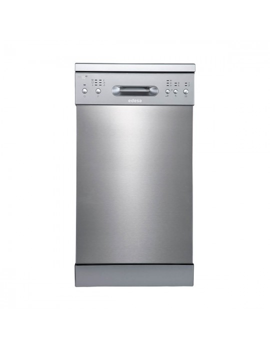 Lavavajillas de libre instalación para 10 cubiertos de 45cm inox. Eficiencia Energética E. 9 litros de consumo de agua por ciclo. 49 dB(A) de potencia acústica. Triple sistema de seguridad: aquacontrol, sobrecalentamiento y antidesbordamiento. 6 programas