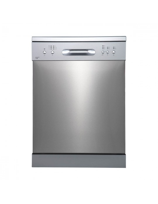 Lavavajillas de libre instalación para 13 cubiertos de 60 cm inox. Eficiencia Energética E. 11 litros de consumo de agua por ciclo. 49 dB(A) de potencia acústica. Triple sistema de seguridad: aquacontrol, sobrecalentamiento y antidesbordamiento. 6 program