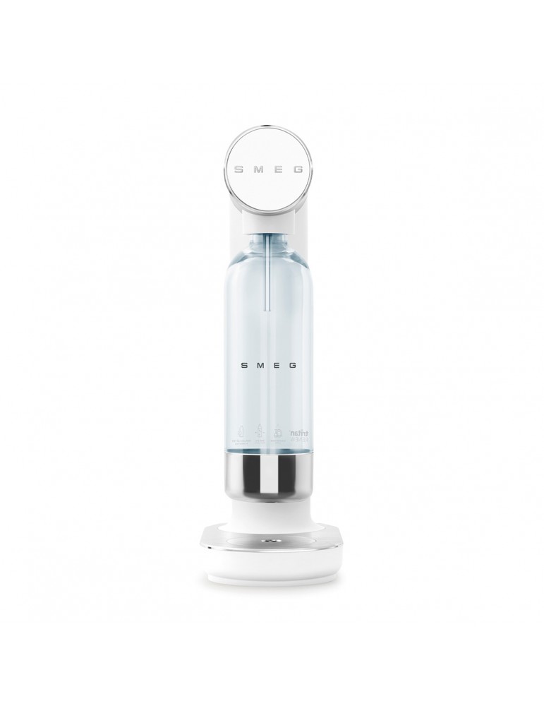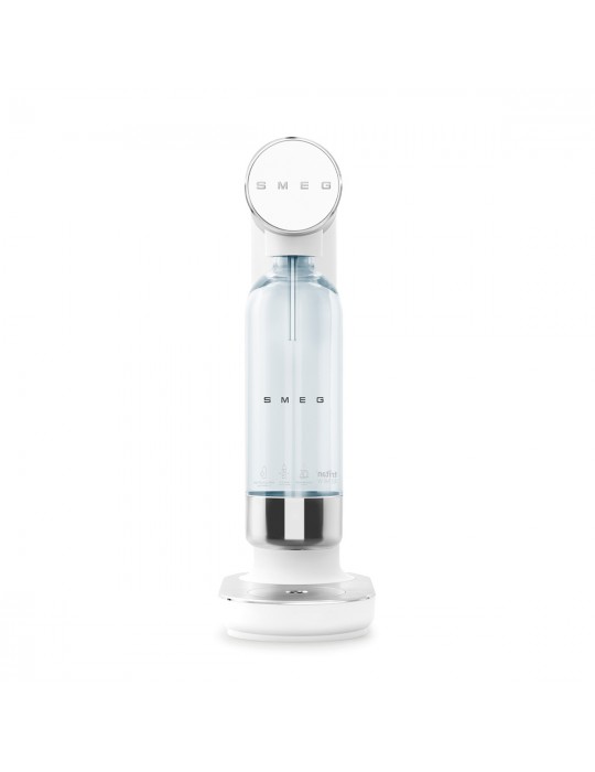 Máquina gasificadora de agua, Collezione, Blanco mate Capacidad de botella 1 litro. Botón frontal intuitivo para iniciar la gasificación. Botella de plástico Tritan™ Renew, fabricada con materiales de origen responsable: duradera, resistente, libre de BPA