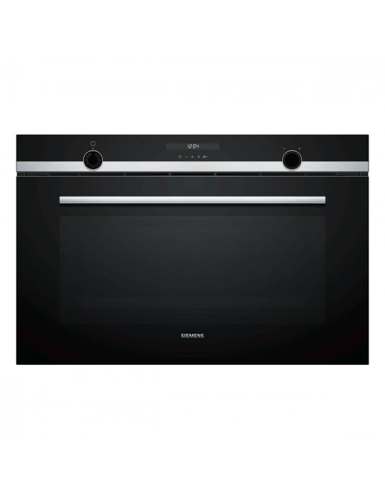 SIEMENS, VB578D0S0, Horno, Multifunción ancho 90cm, A+, Encastrable, 60 cm., 112 l., 10 F, Pirólisis - humidClean, Ap. Abatible, Cristal negro/inox, Display LCD, Reloj electrónico con programación de inicio y paro, 1 varioClip rail, Mandos lightControl
