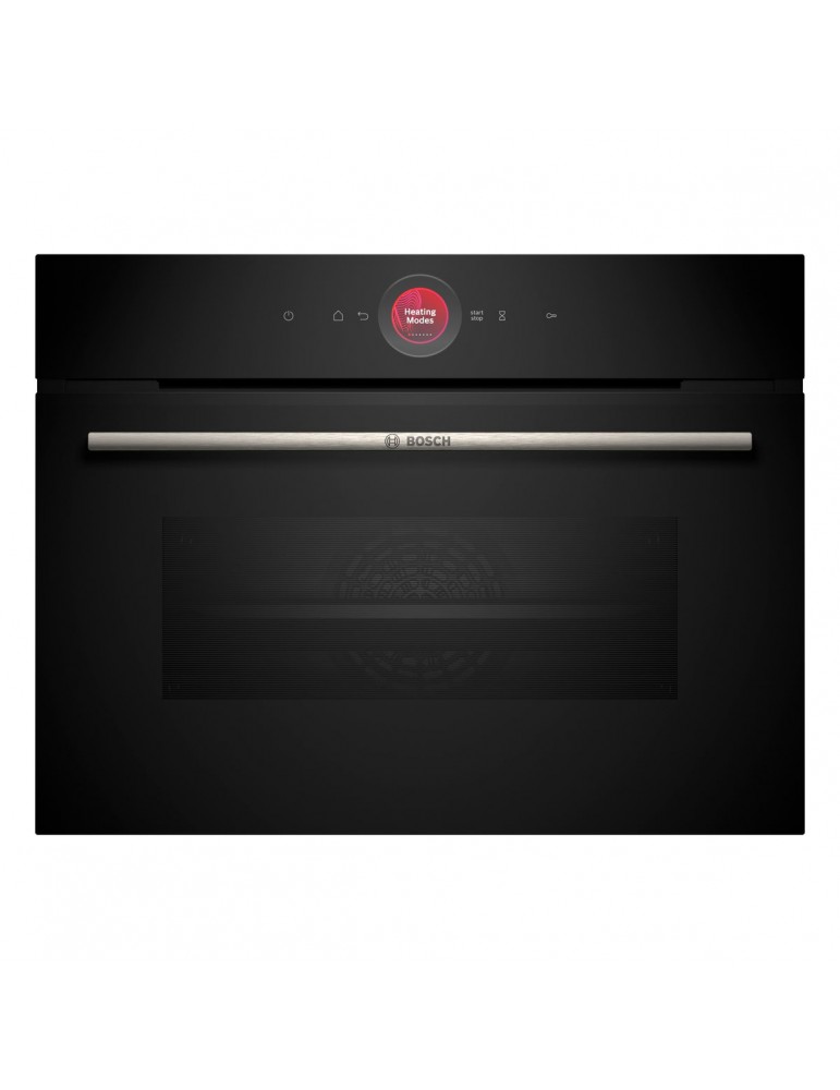 BOSCH, CBG7741B1, Compacto, Multifunción, A+, Integrable, 45 cm., 47 l., 12 F, Pirólisis - Asistente de limpieza con agua, HC, Ap. Abatible, Cristal negro, Display TFT touch, Asistente de cocinado Assist, Reloj electrónico con programación de inicio y par