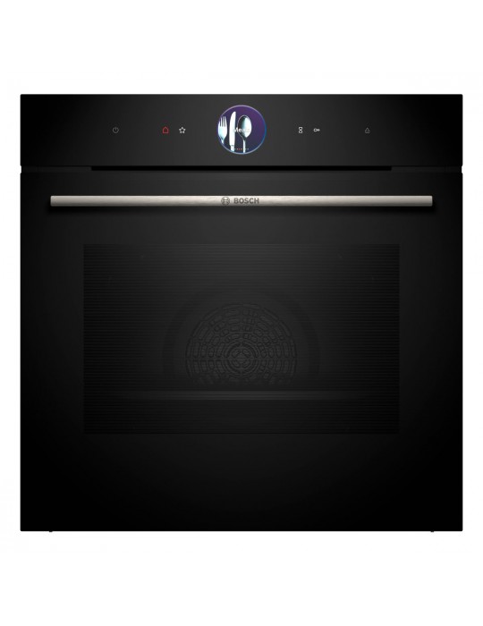 BOSCH, HSG7361B1, Horno, Multifunción con vapor 100%, A+, Integrable, 60 cm., 71 l., 21 F, Asistente de limpieza con agua, HC, Ap. Abatible, Cristal negro, Display TFT touch Plus, Asistente de cocinado Assist, Reloj electrónico con programación de inicio