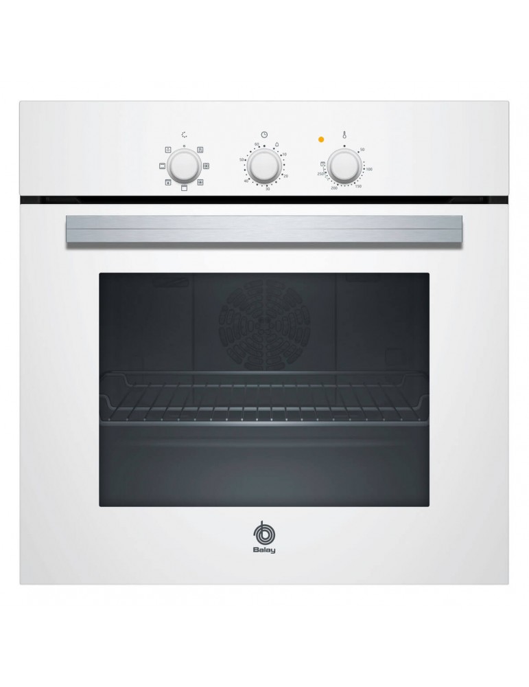 BALAY, 3HB2010B0, Horno, Multifunción, A, Encastrable, 60 cm, 66 litros, 5, Ap. Abatible, Blanco, Avisador de paro, Gradas cromadas, Mandos fijos