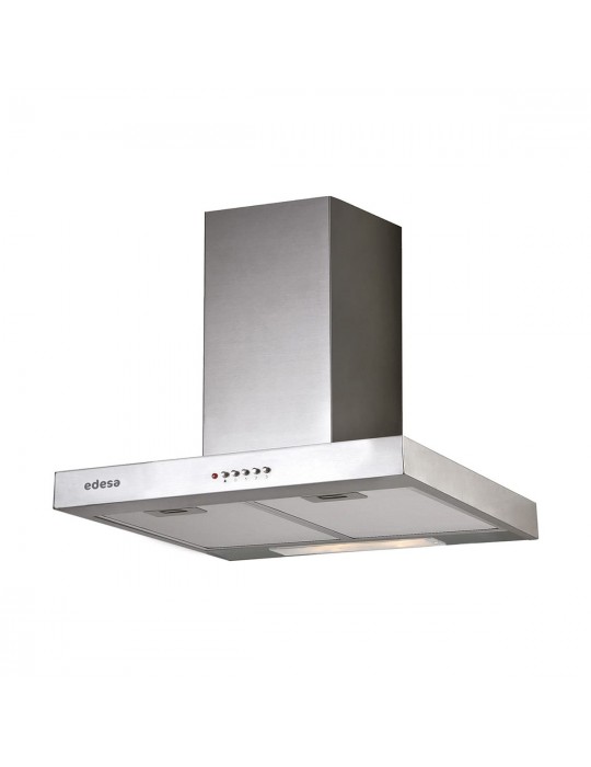 Campana decorativa T invertida (box) de 60cm. Motor de 95W, K7plus. Potencia de extracción Máx/Mín:400/210m3/h. Nivel sonoro Máx/Mín:62/50 dB(A). Eficiencia energética C. 3 niveles de extracción. Mandos mecánicos. 2 lámparas de iluminación LED, e14. Filtr