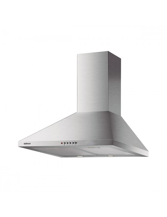 Campana decorativa piramidal de 60cm inox. Motor de 270 W, TA. Potencia de extracción Máx/Mín:645/385m3/h. Nivel sonoro Máx/Mín:71,8/57,8dB(A). Eficiencia energética C. 3 niveles de extracción. Mandos mecánicos. 2 lámparas de iluminación ECOLED, clase A.