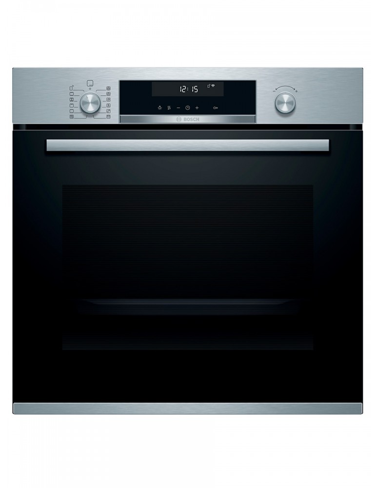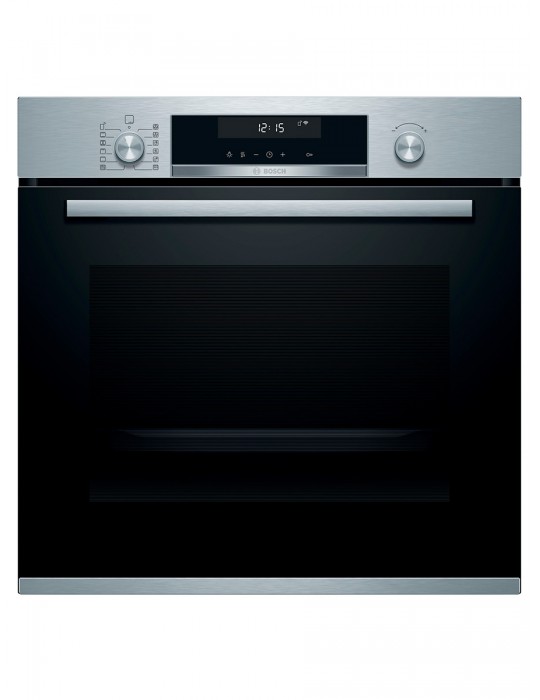 BOSCH, HBG5780S6, Horno, Multifunción, A, Encastrable, 60 cm, 71 litros, 9, Pirólisis, Ap. Abatible, Cristal negro/inox, Display LCD, Gourmet 30 recetas, Reloj electrónico con programación de inicio y paro, 1 clipRail, Mandos ocultables, Apertura y cierre