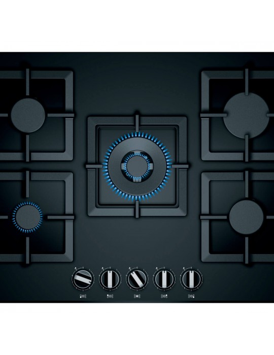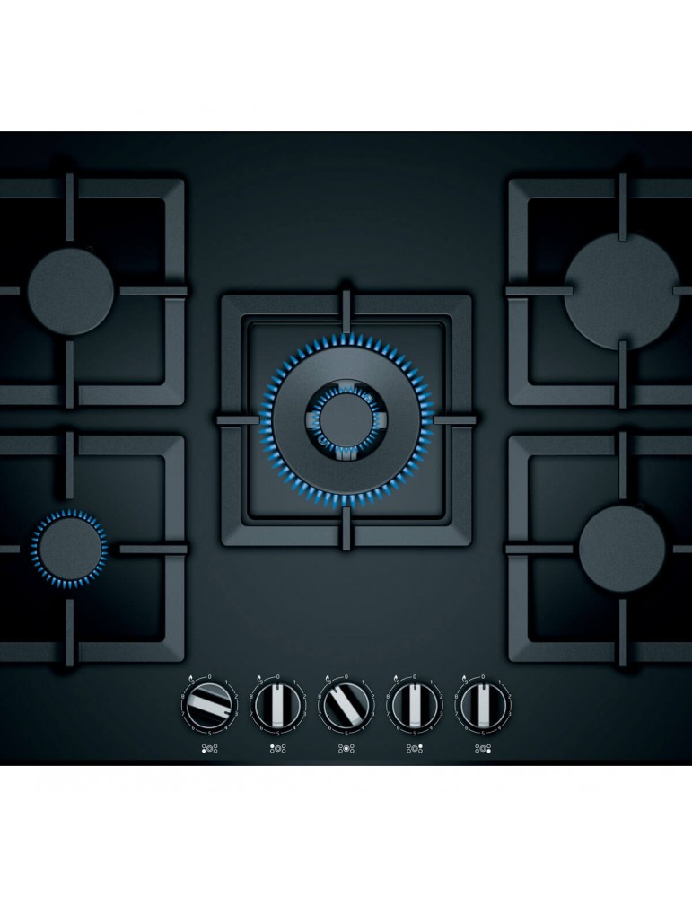 BALAY, 3ETG676HB, Encimera, Gas, Encastrable, 75 cm, 5, Cristal templado negro, Control preciso de la llama con 9 niveles de potencia, wok 4 kW, Gas Stop, parrillas hierro fundido, autoencendido, biselada