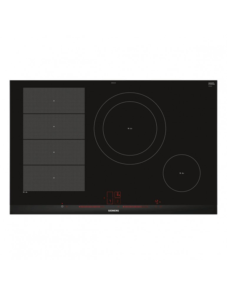SIEMENS, EX875LEC1E, Encimera, Inducción, Encastrable, 80 cm, 3 zonas, Color negro / topClass, lightSlider, flexInducción, zona de 28 cm., fryingSensor en todas las zonas