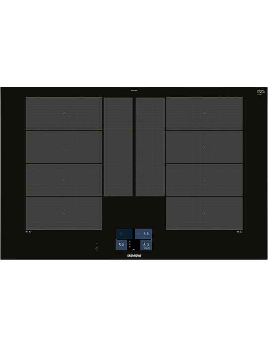 SIEMENS, EX875KYW1E, Encimera, Inducción, Encastrable, 80 cm, 2 zonas, Color negro / topClass, TFT, Home Connect, control placa-campana, flexInducción Plus, fryingSensor en todas las zonas, preparada para cookingSensor