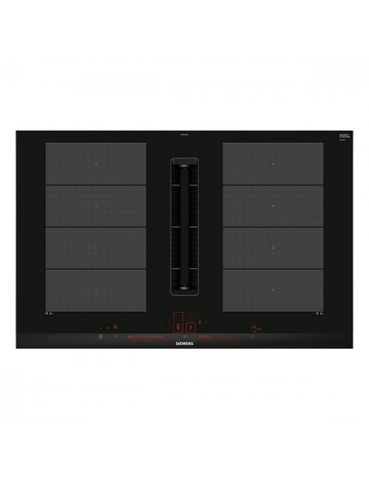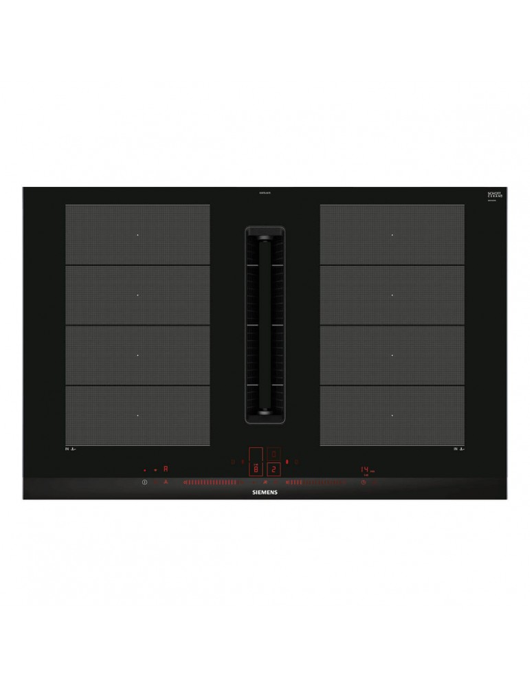SIEMENS, EX875LX67E, Encimera, Inducción con extractor integrado, B, Encastrable, 80 cm., 2 zonas, HC, Color negro / topClass, lightSlider, Home Connect, flexInducción, fryingSensor en todas las zonas, preparada para cookingSensor, motor iQdrive™, Sensor