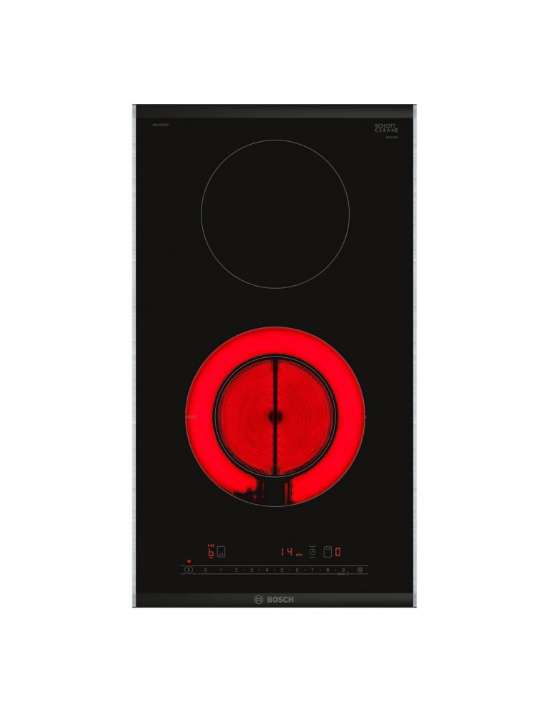 BOSCH, PKF375FP2E, Encimera, Modular, Encastrable, 30 cm., 2 zonas, Terminación Premium, Vitrocerámica, zona doble, control Direct Select, sprint, nueva serigrafía