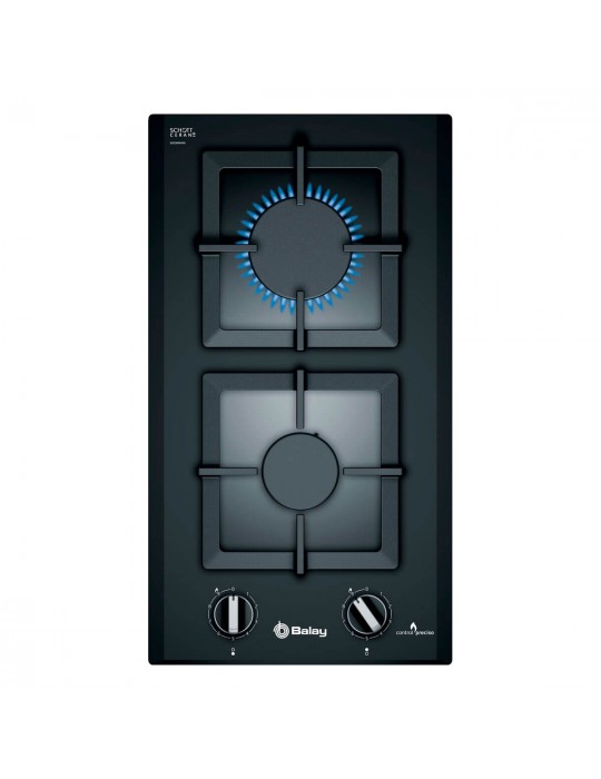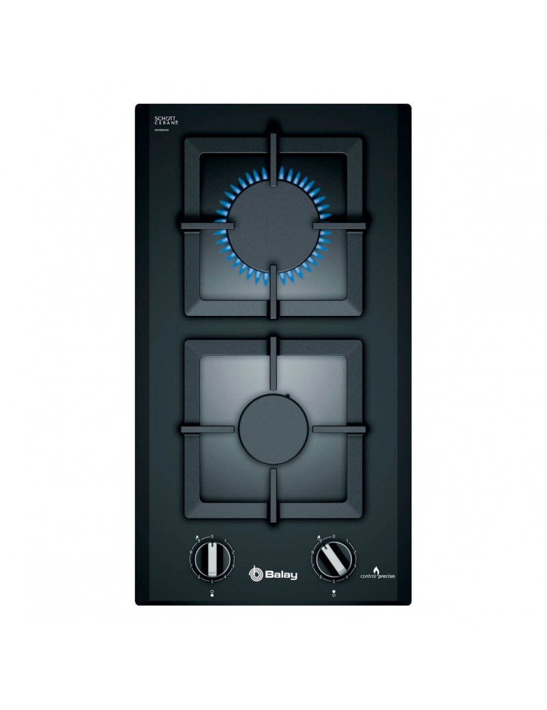 BALAY, 3ETG632HB, Encimera, Dominó, Encastrable, 30 cm, 2, Negra/Biselada, 2 gas, Línea Profesional, Control preciso de la llama con 9 niveles de potencia, Gas Stop, autoencendido