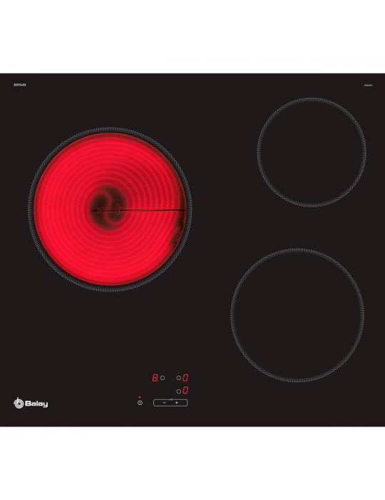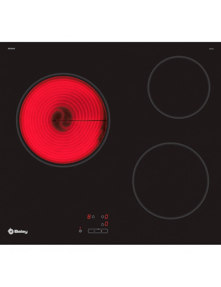BALAY, 3EB764EN, Encimera, Vitrocerámica, Encastrable, 60 cm., 3, Negra/Terminación cristal, Control táctil de fácil uso (9 niveles y sin temporizador), zona de 24 cm.