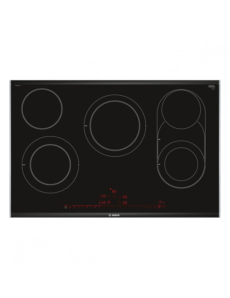 BOSCH, PKM875DP1D, Encimera, Vitrocerámica, Encastrable, 80 cm, 5 zonas, Color negro / Premium, DirectSelect Premium, función combi, sprint