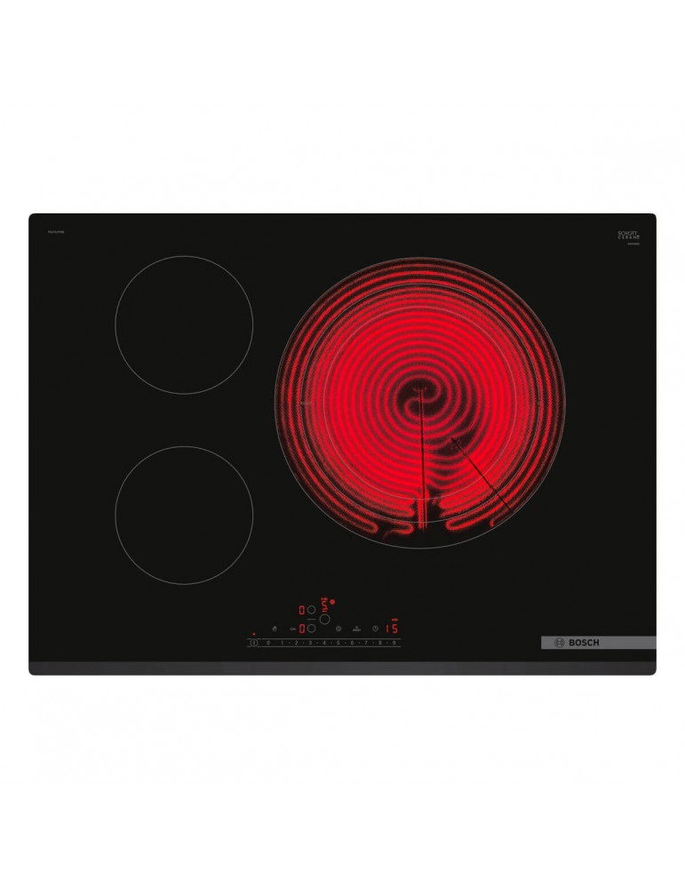 BOSCH, PKD731FP8E, Encimera, Vitrocerámica, Encastrable, 70 cm., 3 zonas, Color negro / bisel delantero, DirectSelect, zona de 32 cm., sprint, nueva serigrafía