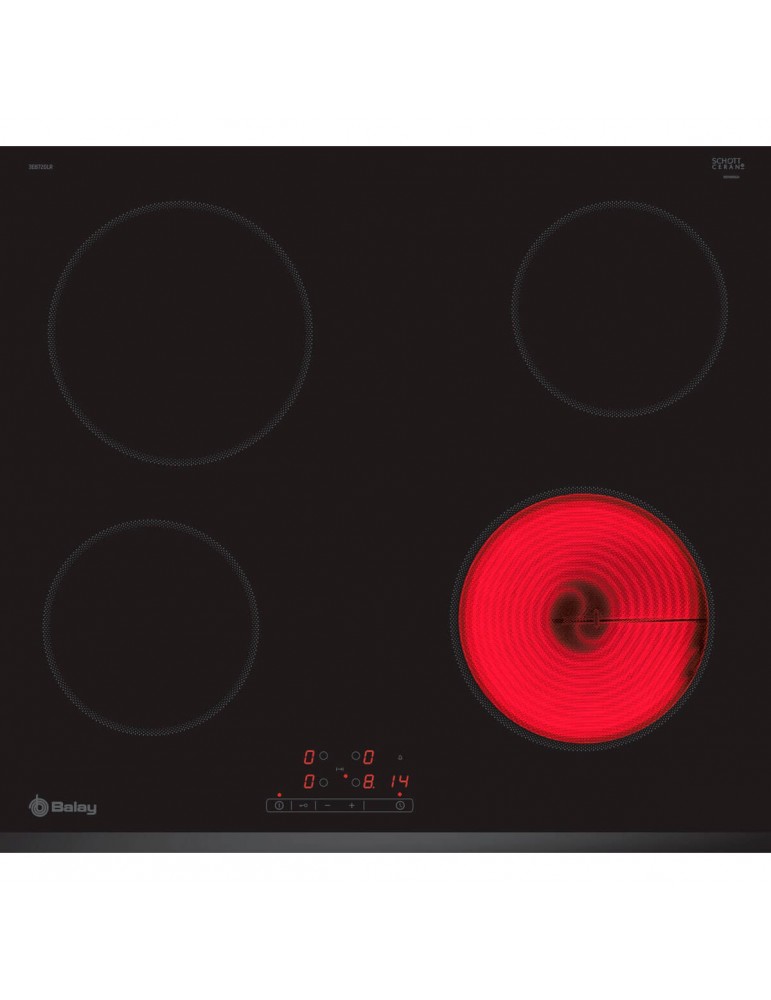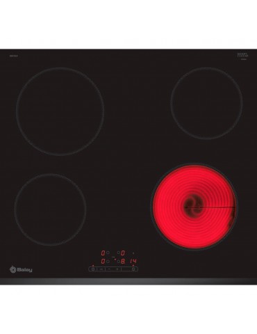 BALAY, 3EB720LR, Encimera, Vitrocerámica, Encastrable, 60 cm, 4, Negra/Bisel delantero, Control táctil de fácil uso