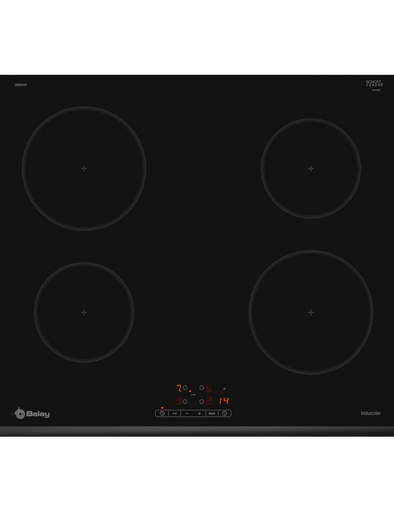 BALAY, 3EB861FR, Encimera, Inducción, Encastrable, 60 cm., 4, Negra/Bisel delantero, Control táctil de fácil uso